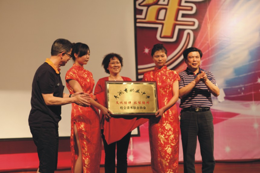 校企讀書聯(lián)合協(xié)會的性質(zhì)是由平湖職業(yè)中專團委和企業(yè)工會發(fā)起成立的群眾性社團組織。協(xié)會的宗旨是:書籍,成就未來;閱讀,伴我成長;互通,增我智慧。協(xié)會聘任市職業(yè)中專校長和企業(yè)負(fù)責(zé)人為名譽顧問,職業(yè)中專圖書館館長和企業(yè)工會主席為顧問,職業(yè)中專老師為指導(dǎo)老師,在職業(yè)中專團委和企業(yè)工會的管理下開展工作,以“讀好書,好讀書”校企讀書交流會的形式進行分任務(wù)、分方向的讀書交流活動。在成立儀式上,首先通過播放企業(yè)宣傳片,聽取企業(yè)代表發(fā)言,讓學(xué)生對企業(yè)多一份了解,對未來的工作選擇多一點信心。接下來是揭牌儀式,由市職業(yè)中專賀陸軍校長、浙江華城集團工會主席沈文英女士、浙江依愛夫游戲裝文化產(chǎn)業(yè)有限公司工會主席李思逵先生共同揭牌,并宣布校企讀書聯(lián)合協(xié)會正式成立。之后由職業(yè)中專圖書館俞象山老師為企業(yè)會員贈送學(xué)校圖書館的借閱證,實現(xiàn)校企資源共享,職業(yè)中專團委姚雁書記為企業(yè)會員贈送書籍《正能量》,最后,為慶祝協(xié)會成立,職業(yè)中專師生上演了一臺精彩的文藝節(jié)目。
