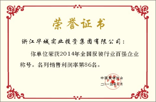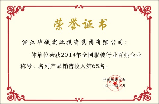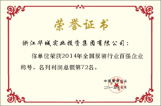 華城集團(tuán)作為平湖服裝行業(yè)的骨干企業(yè),近年來,在經(jīng)營服裝加工、從事外貿(mào)出口業(yè)務(wù)中,一直保持穩(wěn)健發(fā)展,取得了良好的經(jīng)營業(yè)績,對社會作出了較大的貢獻(xiàn)。不僅排列于平湖服裝行業(yè)十強之列,而且在全國服裝行業(yè)百強企業(yè)排序中,浙江華城實業(yè)投資集團(tuán)有限公司連續(xù)榜上有名。再次榮獲2014年全國服裝行業(yè)百強企業(yè)榮譽稱號,名列產(chǎn)品銷售收入第65名、利潤總額第72名、銷售利潤率第86名的榮譽稱號。這是集團(tuán)公司自2005年以來連續(xù)十年獲此殊榮,成為嘉興地區(qū)唯一能連續(xù)榮獲全國服裝行業(yè)百強的企業(yè),再次顯示了華城集團(tuán)努力拼搏的成功與輝煌。值得我們?yōu)榇硕院。華城能連續(xù)十年保持中國服裝百強企業(yè)的榮譽,創(chuàng)下企業(yè)發(fā)展史上前所未有的佳績,實為來之不易。這是全體華城員工在董事長的正確領(lǐng)導(dǎo)下,共同努力、奮力拼搏而取得的成果。再一次證明了先進(jìn)的企業(yè)文化是企業(yè)生存和發(fā)展的內(nèi)在動力,華城企業(yè)文化的形成與發(fā)展,也將繼續(xù)影響與激勵華城集團(tuán)走向更美好的企業(yè)未來。