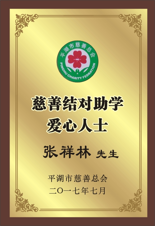 當(dāng)前位置:首頁 > 華城動態(tài)慈善事業(yè)是改善民生、構(gòu)建和諧社會的崇高事業(yè),熱心慈善事業(yè)的人總是被世人所尊重。日前,平湖市慈善總會為“愛心平湖•慈善助學(xué)”公益項(xiàng)目活動提供捐助的愛心人士頒發(fā)了獎牌。作為慈善事業(yè)的行動者,愛心奉獻(xiàn)的傳播者,我公司董事長張祥林再次與貧寒學(xué)子結(jié)對,用實(shí)際行動助推貧寒學(xué)子圓夢大學(xué),成為有用之才。