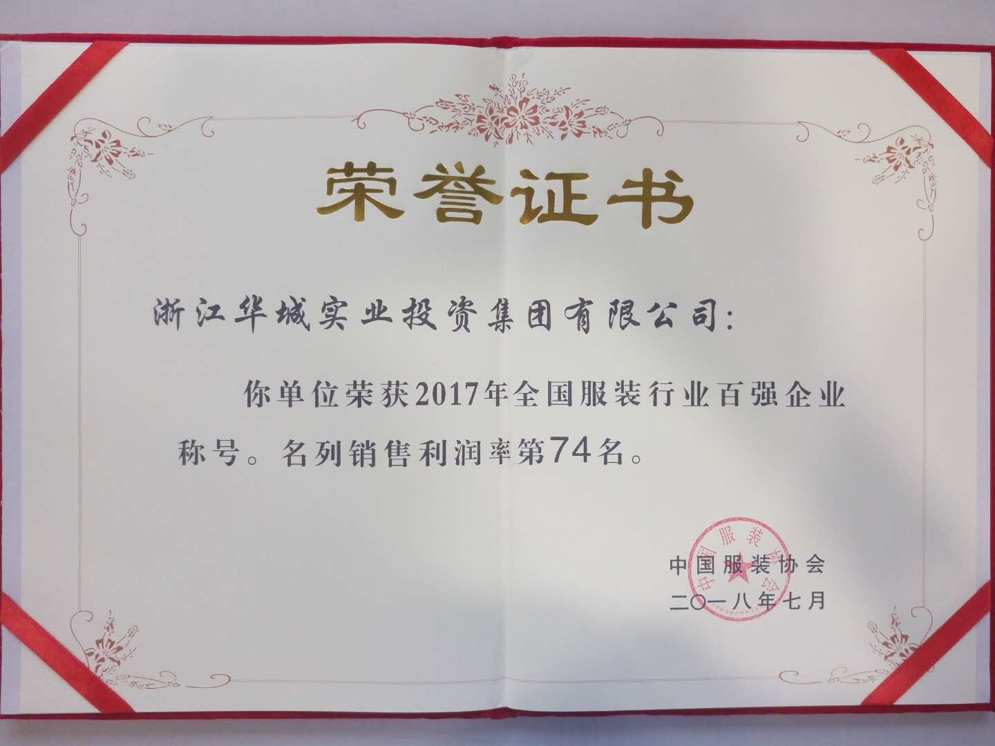 一再就再了十二年,到現(xiàn)在為止,我們?nèi)A城集團已經(jīng)連續(xù)十三次榮獲“全國服裝行業(yè)百強企業(yè)”稱號,是嘉興地區(qū)唯一能連續(xù)多年榮獲全國服裝行業(yè)百強的企業(yè)。需要說明的是,“服裝行業(yè)百強企業(yè)”是由中國服裝協(xié)會基于客觀公正的原則在會員企業(yè)中依據(jù)財務(wù)數(shù)據(jù)進(jìn)行獨家發(fā)布。在2017年中國服裝行業(yè)百強企業(yè)榜單上,全國共有131家企業(yè)榜上有名,其中浙江有30家企業(yè)上榜,成為百強企業(yè)上榜數(shù)排第二的省份,僅次于江蘇的35家。