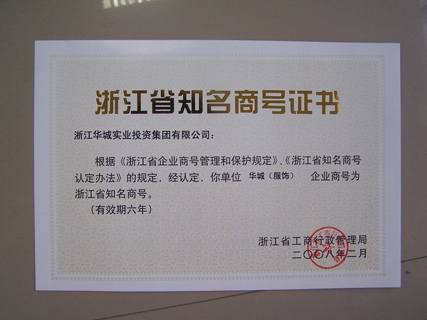 根據(jù)《浙江省企業(yè)商號管理和保護(hù)規(guī)定》、《浙江省知名商號認(rèn)定辦法》,經(jīng)浙江省知名商號評審委員會評審,我省有97件企業(yè)商號被認(rèn)定為浙江省知名商號,其中嘉興市有10件企業(yè)商號,我公司“華城(服飾)”商號榜上有名。 知名商號的被認(rèn)定是商號保護(hù)體系中的行政保護(hù),對知名企業(yè)不被侵權(quán)具有現(xiàn)實意義。