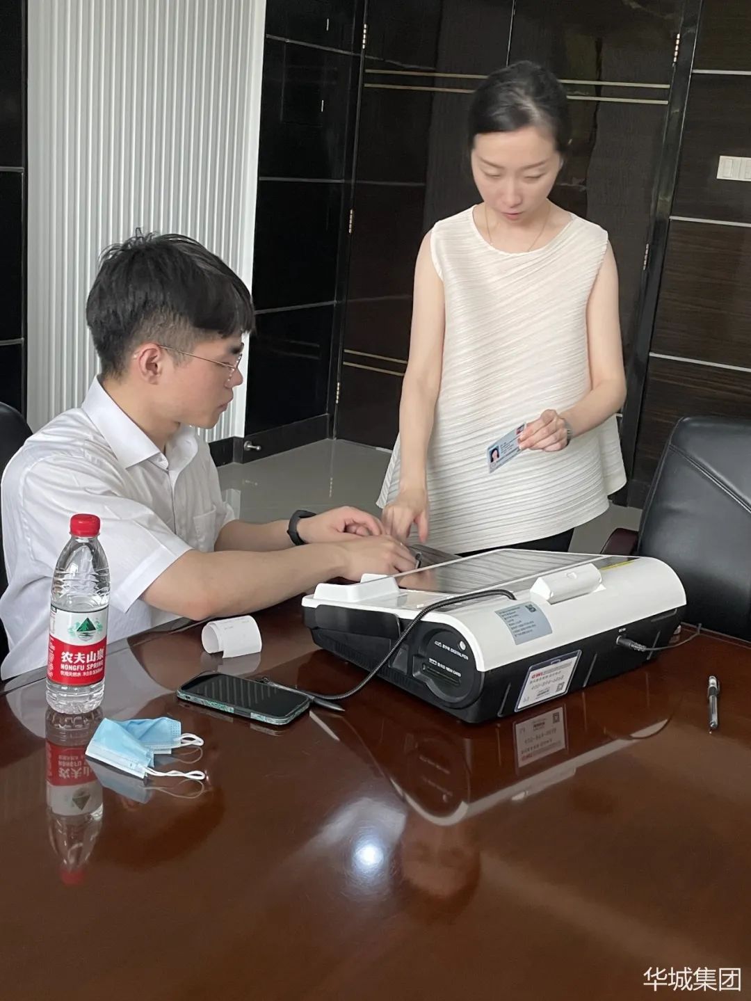 通過廣播、企業(yè)微信群等宣傳渠道,員工們提前兩天就已經(jīng)得到換卡通知,大家?guī)е矸葑C和二代社保卡,來到會(huì)議室,逐一辦理更換業(yè)務(wù)。換卡還是需要一定的流程和時(shí)間的,簽字、掃臉、換卡以及一些相關(guān)事項(xiàng),因?yàn)橛秀y行工作人員一對(duì)一的講解和服務(wù),現(xiàn)場(chǎng)效率很高,員工們有序辦理。不用到外面銀行去排隊(duì)等候,免除了炎炎夏日來去路上的大汗淋漓,讓員工一次也不用跑,這既反映了農(nóng)商行良好的服務(wù)態(tài)度,也詮釋了華城以人為本、為員工考慮的經(jīng)營(yíng)理念。