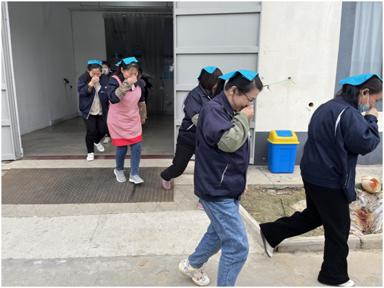 當(dāng)警報響后,所有員工馬上停下工作,關(guān)閉機(jī)械設(shè)備電源,以最快的速度按指定的“安全出口”“疏散通道”撤離到安全區(qū)域集合點,并以班組為單位整隊集合。在疏散逃生時,所有人員保持鎮(zhèn)定,集中精力,服從指揮。所有人員彎腰、口捂毛巾迅速跑出車間至外部安全區(qū)域。