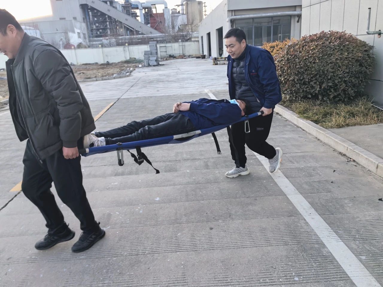 醫(yī)療人員立即撥打120與急救中心聯(lián)系,對(duì)傷員進(jìn)行簡(jiǎn)單的救治,扶出現(xiàn)場(chǎng)送往醫(yī)院;救援人員劉琨利報(bào)告總指揮,一人受輕傷,對(duì)其進(jìn)行簡(jiǎn)單救治后已送往醫(yī)院,其他人員已全部安全撤離;最后對(duì)現(xiàn)場(chǎng)進(jìn)行恢復(fù),進(jìn)行安全檢查,此次應(yīng)急演練結(jié)束。