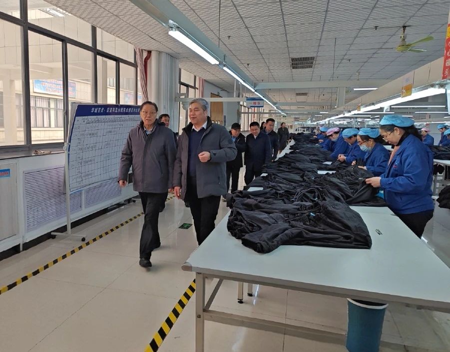 調(diào)研組一行首先來到濟寧華城百靈服飾有限公司,實地參觀了黨建文化長廊與生產(chǎn)車間。在黨建文化長廊,調(diào)研組認真聽取了關于“雙融雙創(chuàng)”(黨建與業(yè)務融合、創(chuàng)新與創(chuàng)業(yè)融合)的實踐成果介紹,深入了解“紅色引擎”工程如何推動紡織服裝產(chǎn)業(yè)的高質(zhì)量發(fā)展。在生產(chǎn)車間,調(diào)研組詳細詢問了企業(yè)的生產(chǎn)流程、技術創(chuàng)新及市場拓展情況,對企業(yè)在黨建引領下取得的成績給予了充分肯定。