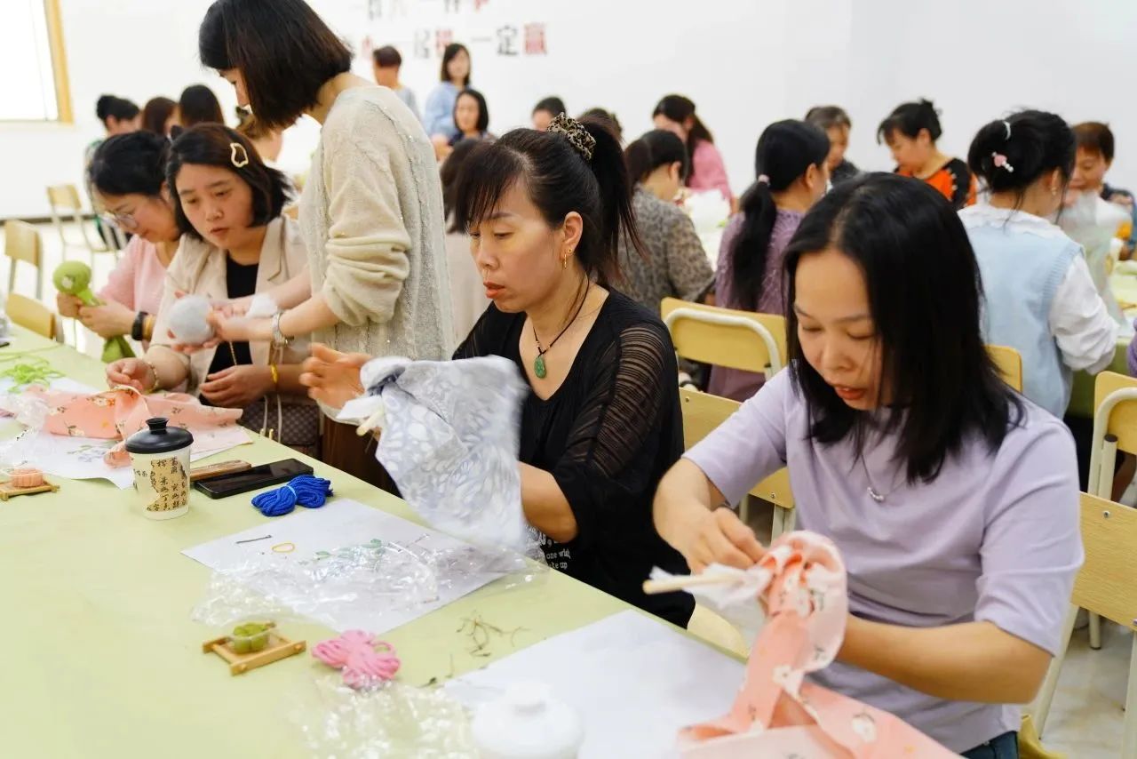 艾草錘作為中醫(yī)養(yǎng)生的實用工具,對久坐久站的員工們益處頗多。大家從填充艾草等五味中藥材到內(nèi)襯收緊、外花方巾的捆繩,一步步親手制作養(yǎng)生錘。在這過程中,大家熱情高漲,互幫互助,沉浸在動手的樂趣中。