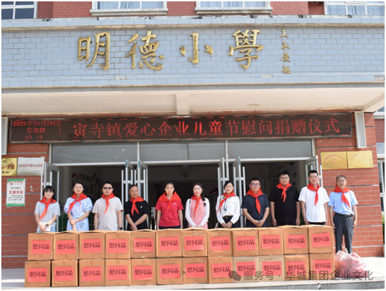 當(dāng)前位置:首頁 > 華城動態(tài)5月29日,在寅寺鎮(zhèn)鎮(zhèn)政府領(lǐng)導(dǎo)陪同下,華城好兄妹和另外幾家企業(yè)共同來到寅寺鎮(zhèn)中心小學(xué),為孩子們送去兒童節(jié)禮物。校長帶領(lǐng)孩子們熱烈地歡迎我們的到來。孩子們?yōu)槲覀儽硌萘宋璧浮痘ü魑枋⑹馈。表演時,他們的臉上充滿歡樂,色彩繽紛的花棍在孩子們手中熟練地飛舞著。舞蹈表演完后,在校長的安排下,孩子們高興地為鎮(zhèn)領(lǐng)導(dǎo)和我們企業(yè)代表戴上鮮艷的紅領(lǐng)巾。