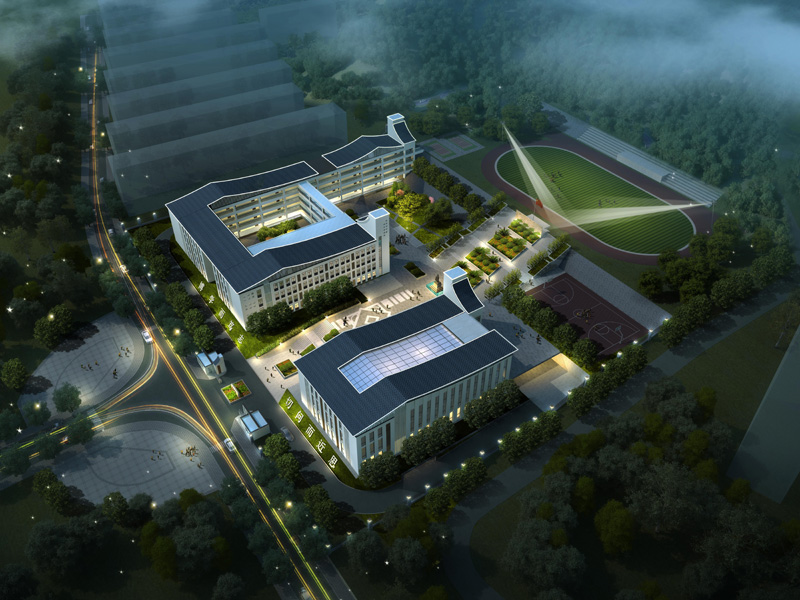 安化縣第一芙蓉學校夜景鳥瞰圖